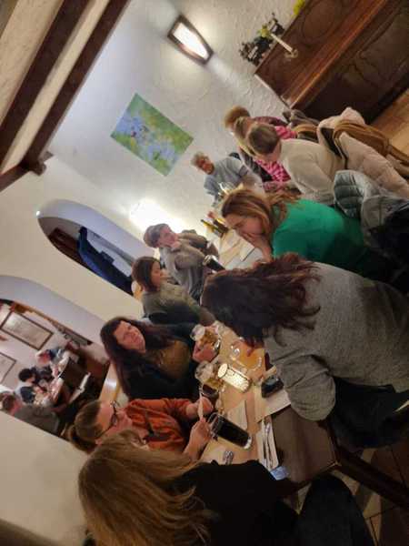 Nach einer abenteuerlichen, aber dennoch souverän gemeisterten Busfahrt durch die engen Gassen von Rüdesheim, fand der Tag einen gelungenen Ausklang bei einem gemeinsamen Abendessen im Weingut und Gutsausschank Eibinger Zehnthof.